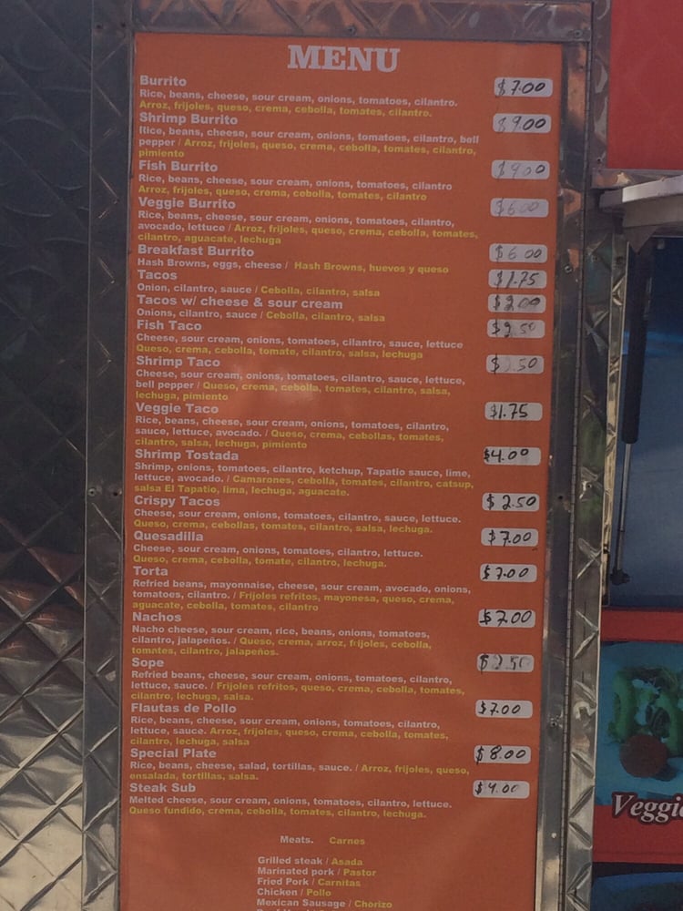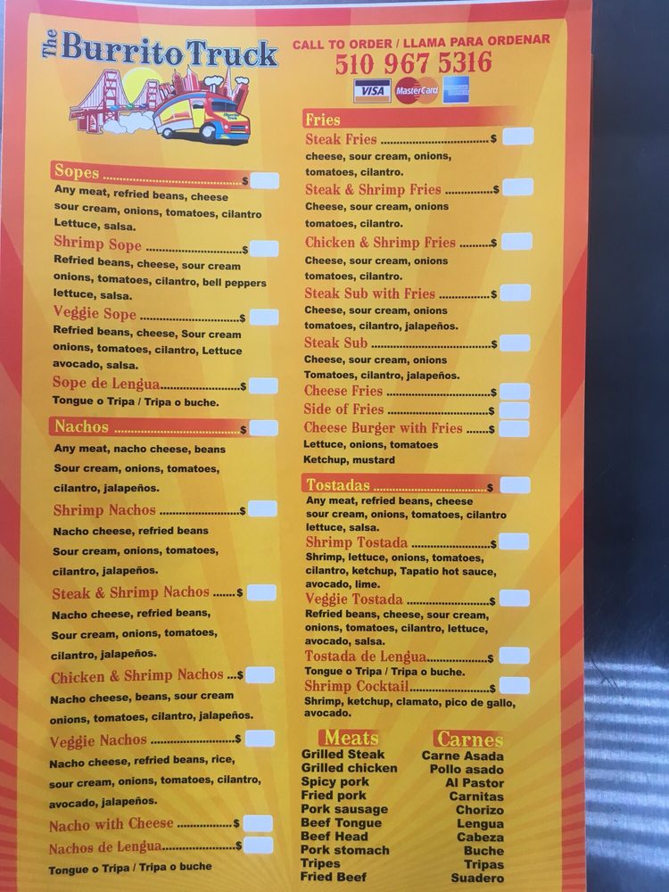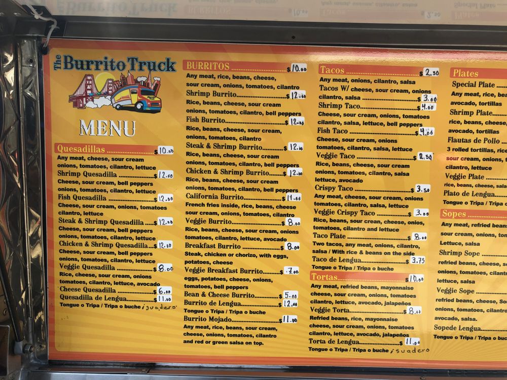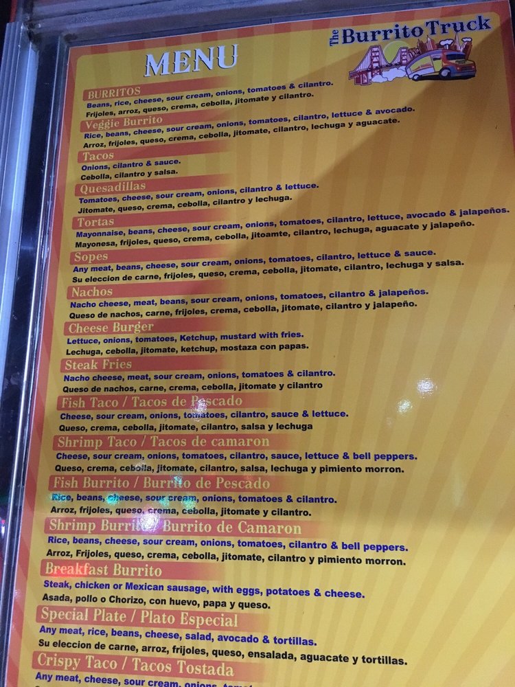 The Burrito Truck Menu (Update 2025)